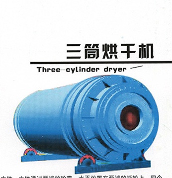 三簡烘干機(jī)是由三個不同直徑的同心圓、彼此相套,組合而成。為烘干機(jī)的主體,主體通過兩端的輪帶,水平放置在兩端的托輪上,四個調(diào)速電機(jī)及減速機(jī)分別驅(qū)動兩瑞的托輪,使烘干機(jī)繞其旋轉(zhuǎn),從內(nèi)筒入料,回轉(zhuǎn)推進(jìn),轉(zhuǎn)到中筒推回,再由中筒轉(zhuǎn)到三筒推進(jìn)排出。由于采用套簡式結(jié)構(gòu),簡體長度大大縮短,占地少、土建省、套簡式結(jié)構(gòu)形成了自身保溫,筒體散熱損失大幅度減少,熱效率大大提高,比相同規(guī)格的單筒烘干機(jī)熱效率提高55%。